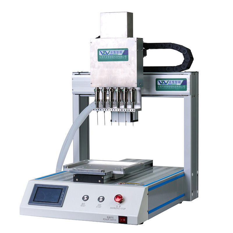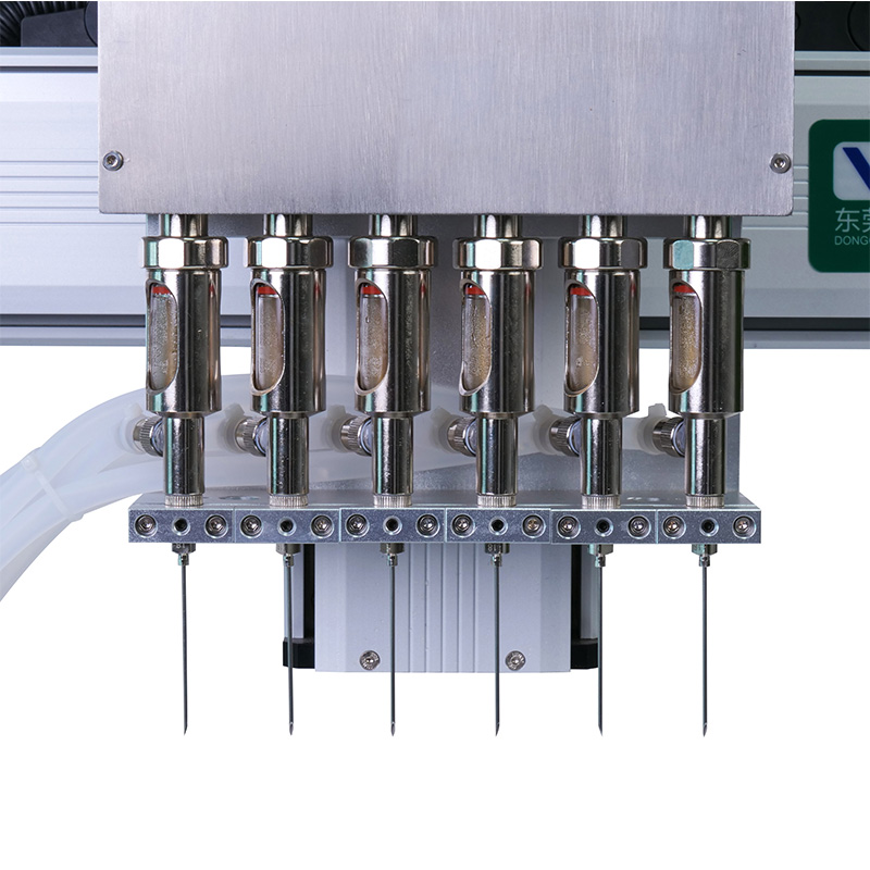 高精度自動注油機(單軸六頭)純電動控制注液工作,不需要氣泵;操作簡 單、體積小;具有高精度、高效率、穩定性強等特點。